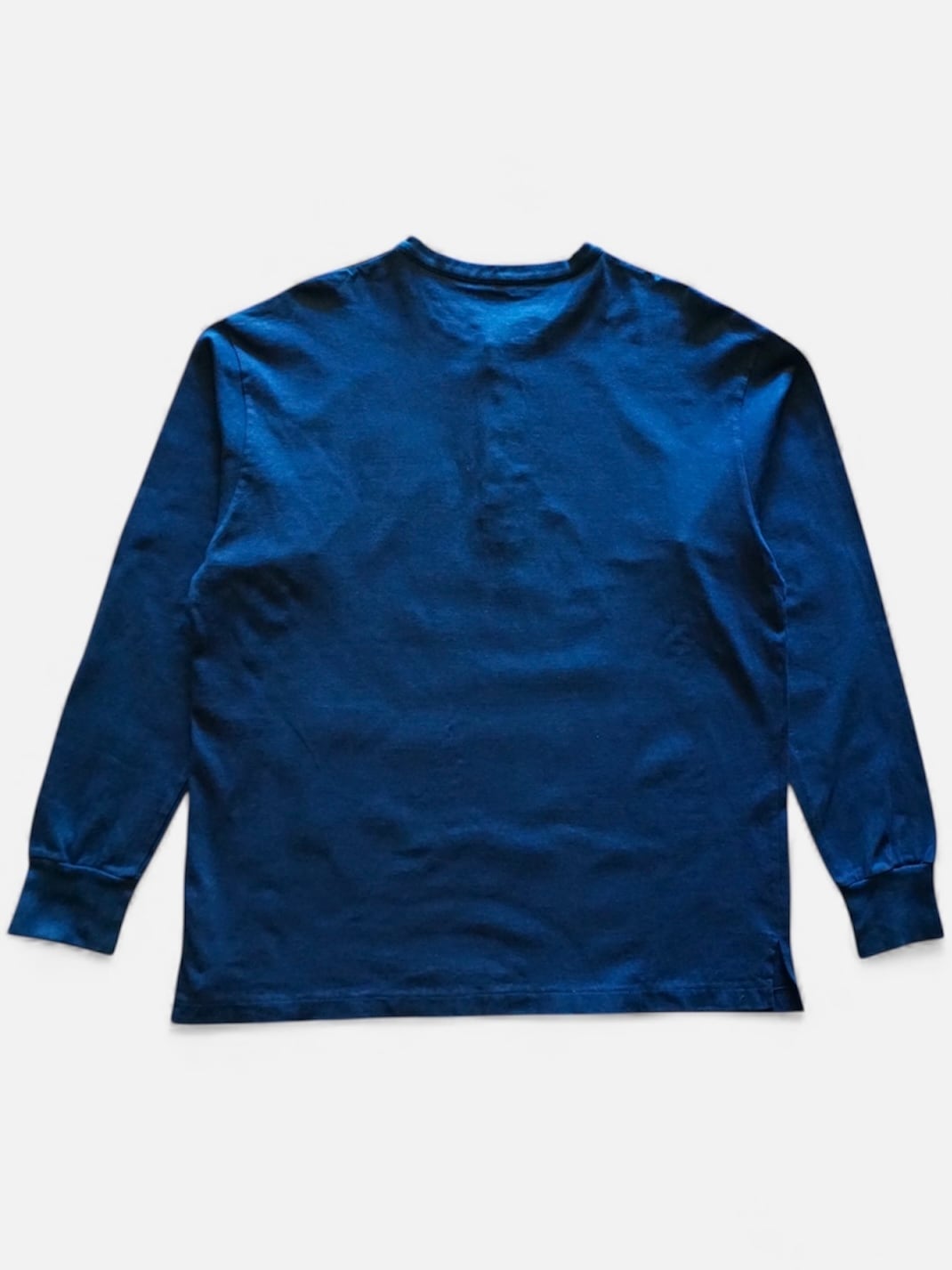 一般的なヘンリーネックの直線の無骨さとは異なり、曲線を描く変形の前立てが、ラフさの中に「艶」と「品格」を演出します。