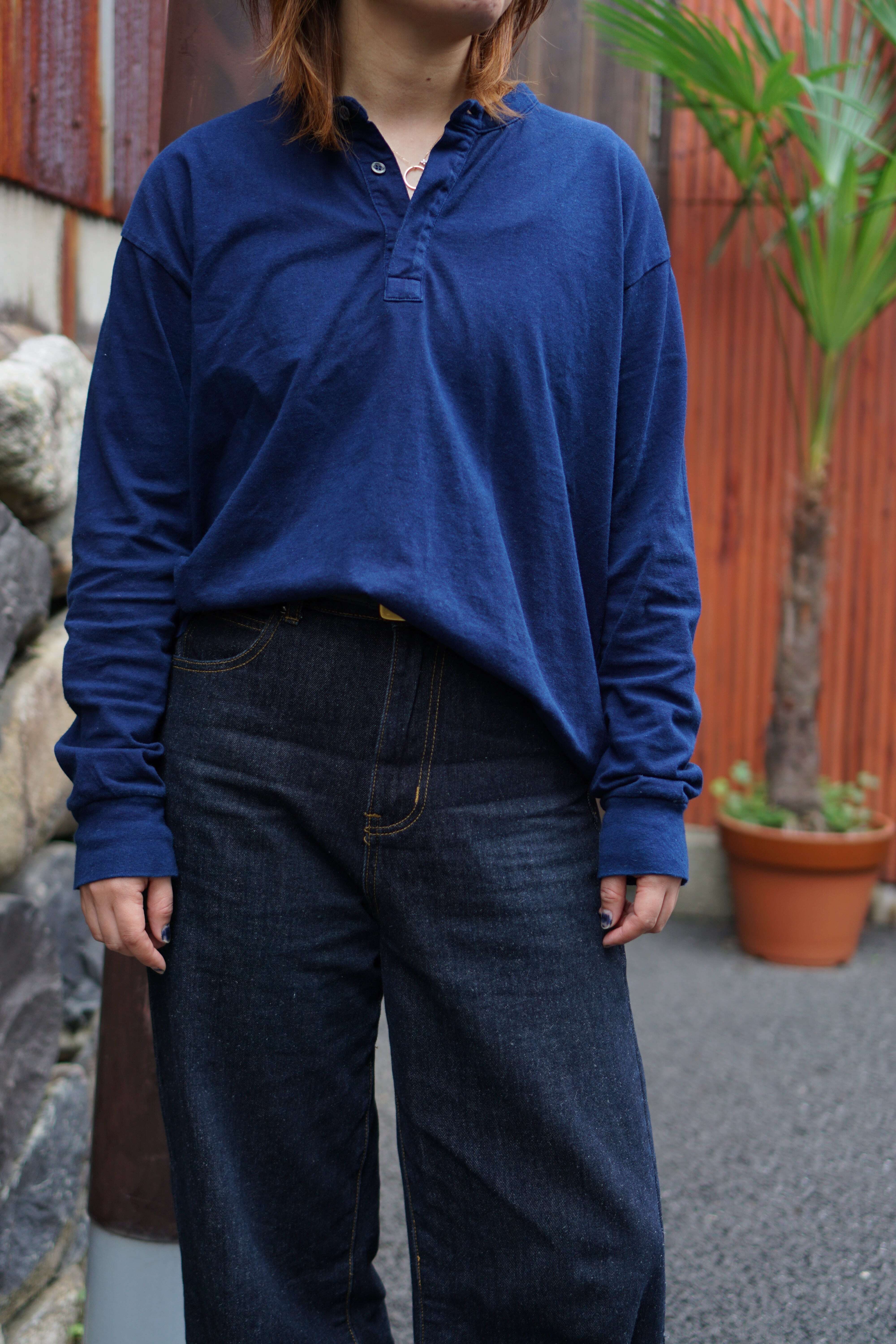 一般的なヘンリーネックの直線の無骨さとは異なり、曲線を描く変形の前立てが、ラフさの中に「艶」と「品格」を演出します。