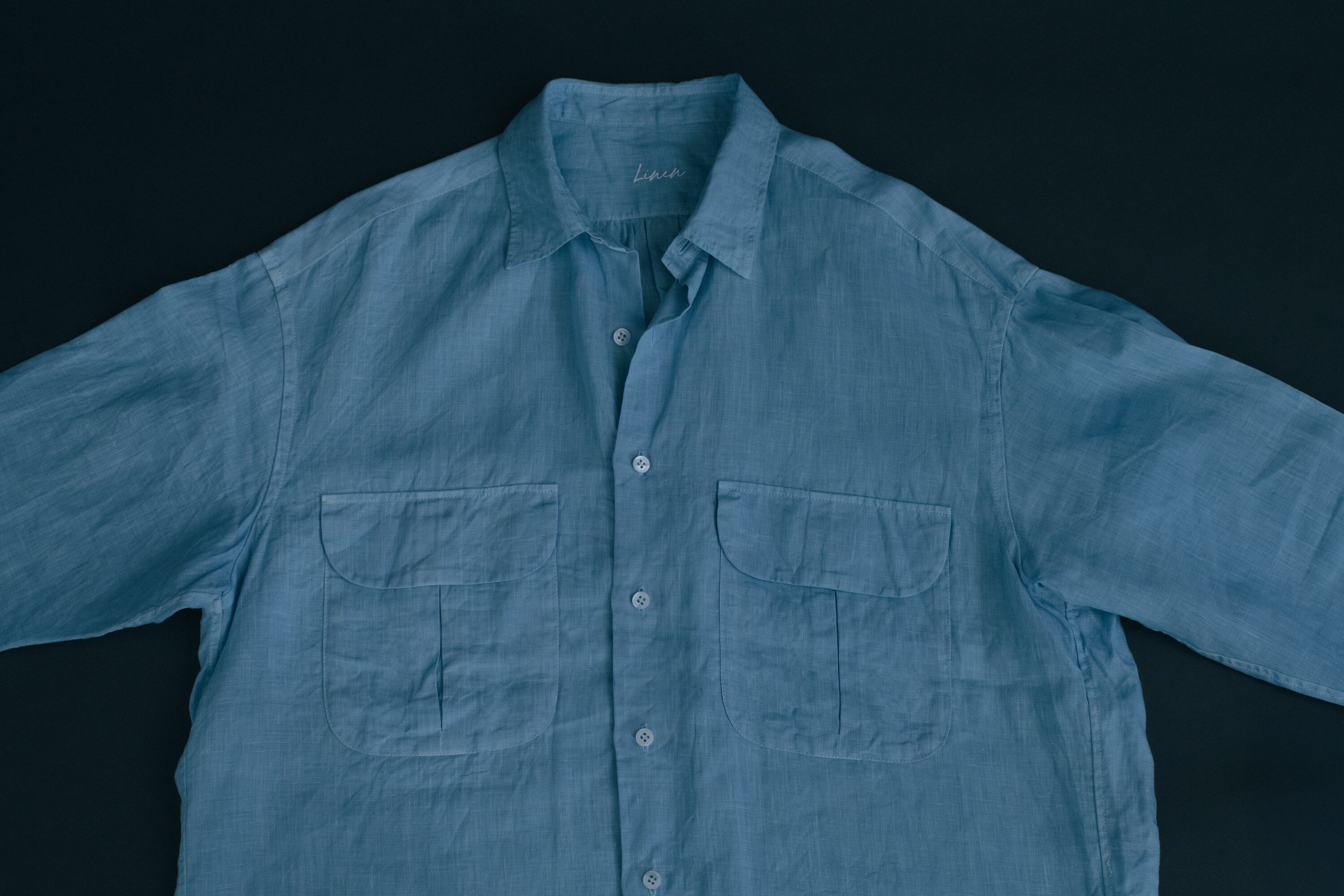 天然藍で染めたリネンのシャツ。